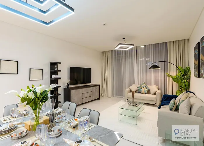 Il 2 Bed Apt In District One Dubai - Lagoon Views, situato a 7 km dai Torri Emirates, offre ai suoi ospiti Wi-Fi sia per affari che per piacere.